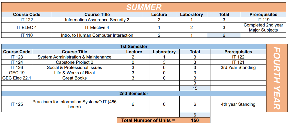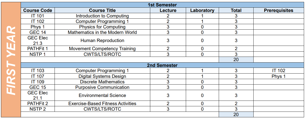The Bachelor of Science in Information Technology (BSIT), one of the programs offered by the College of Science under the Department of Computer Science is designed to prepare students for a career in Information Technology and other related fields, equipped with the necessary skills to pursue advanced studies, and/or become Applications Developer, Database Administrator, Entrepreneur in IT industry, Information Security Administrator, Information Technology Instructor, Network Administrator, Network Engineer, Systems Analysts, Technical Support Specialist, Test Engineer, Web Administrator/ Web Master and Web Developer other Information Technology Professionals who shall develop and promote Information and Communications Technology in the region in the field of Information Technology.